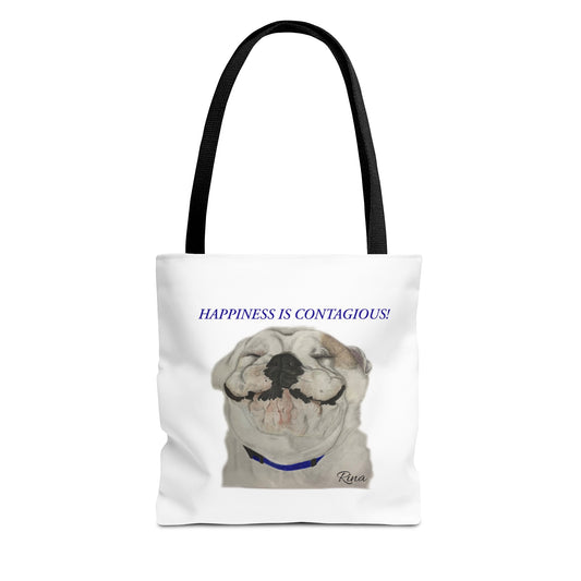 Happiness Is Contagious Happy BulldogTote Bag, Beach Bag, Pool Bag, Book Bag